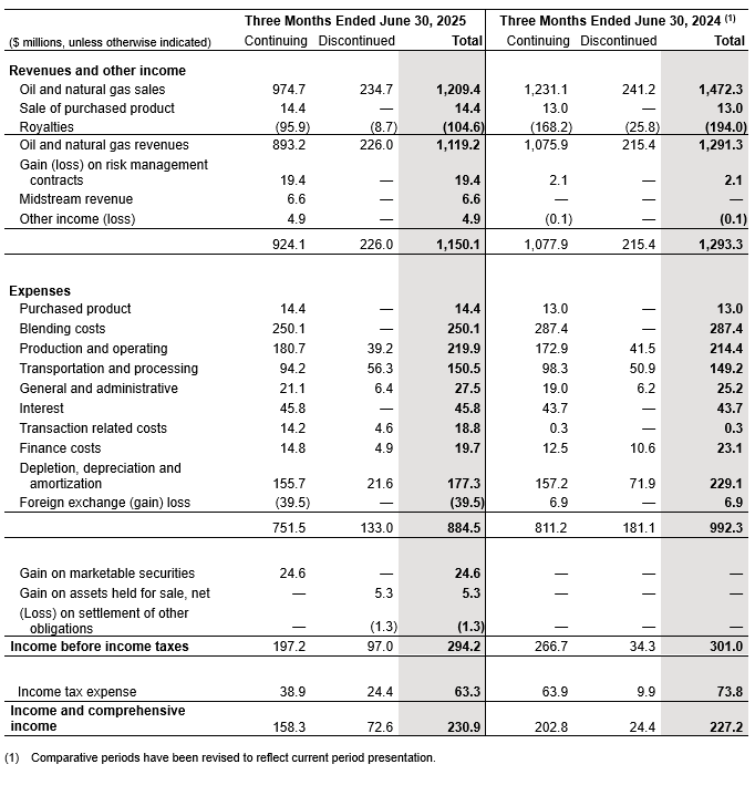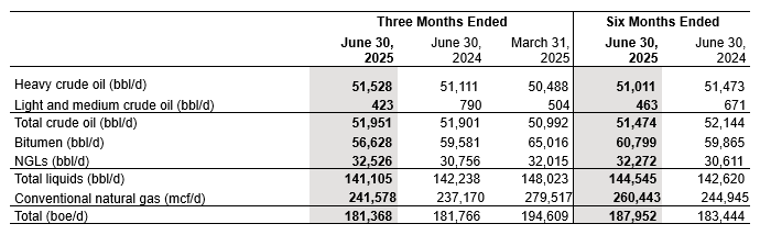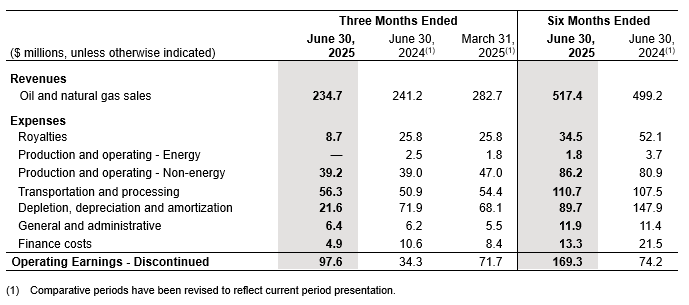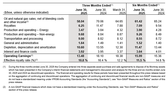 During the three months ended June 30, 2025 the Company entered into three separate asset purchase and sale agreements to dispose of its Montney assets, the results from which have been presented in the Company’s interim financial statements and management’s discussion and analysis for the three and six months ended June 30, 2025 and 2024 as discontinued operations. Unless otherwise noted, all figures in this press release reflect the combined results of continuing and discontinued operations.